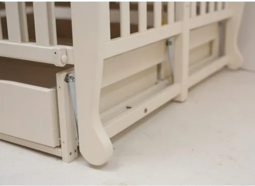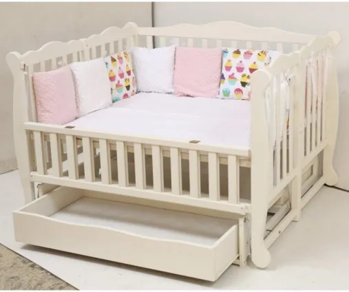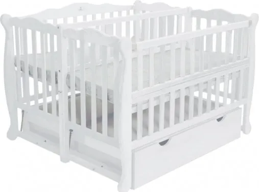 Кроватка представлена также с откидной боковиной с одной стороны, что предоставит родителям легкий доступ к детям.