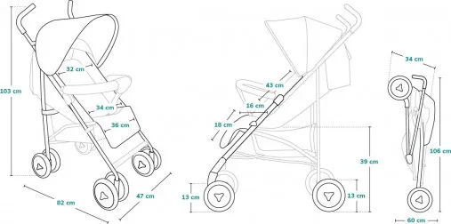 - Размеры в сложенном виде: 27 × 44 × 106 см