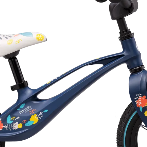 Регулировка руля и седла модели Bart Air позволяет легко адаптировать настройки к потребностям детей с разным телосложением. Благодаря противоскользящим накладкам на руле управление велосипедом становится проще, а блокировка руля определенно снижает риск получения травм. На раму нанесено нежное тиснение, которое служит подставкой для ног.