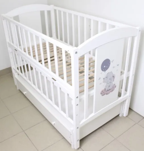 Детская кроватка Кузя Слоник Белый на маятнике с ящиком