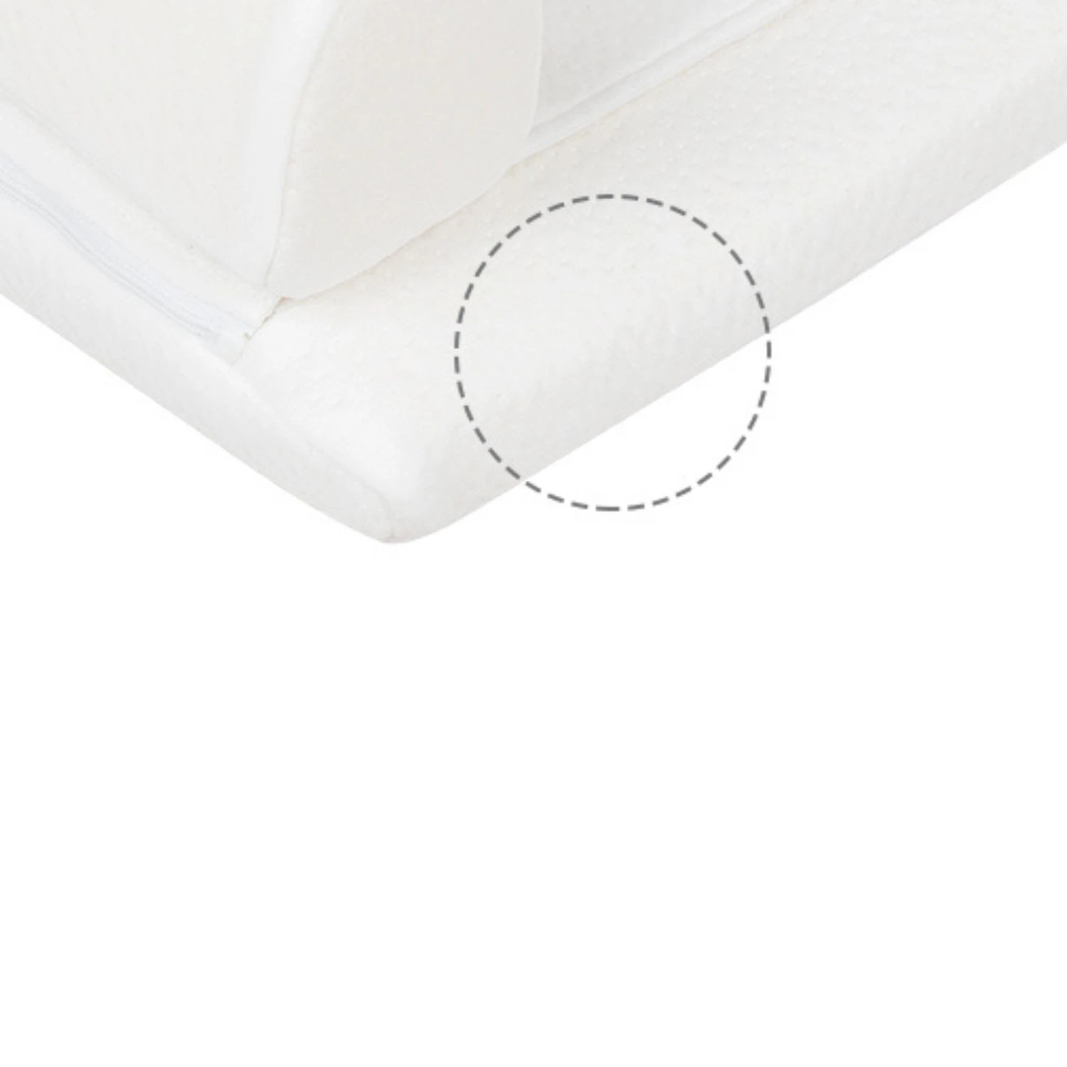 Клиновидная подушка Airknit из пены с эффектом памяти создана для безопасного и комфортного сна малыша. Наклон 12° помогает снизить дискомфорт при коликах, рефлюксе и заложенности, а регулируемые боковые валики удерживают ребенка в правильном положении. Мягкий съемный чехол с вышивкой и узором в горошек подчеркивает премиальное качество изделия.