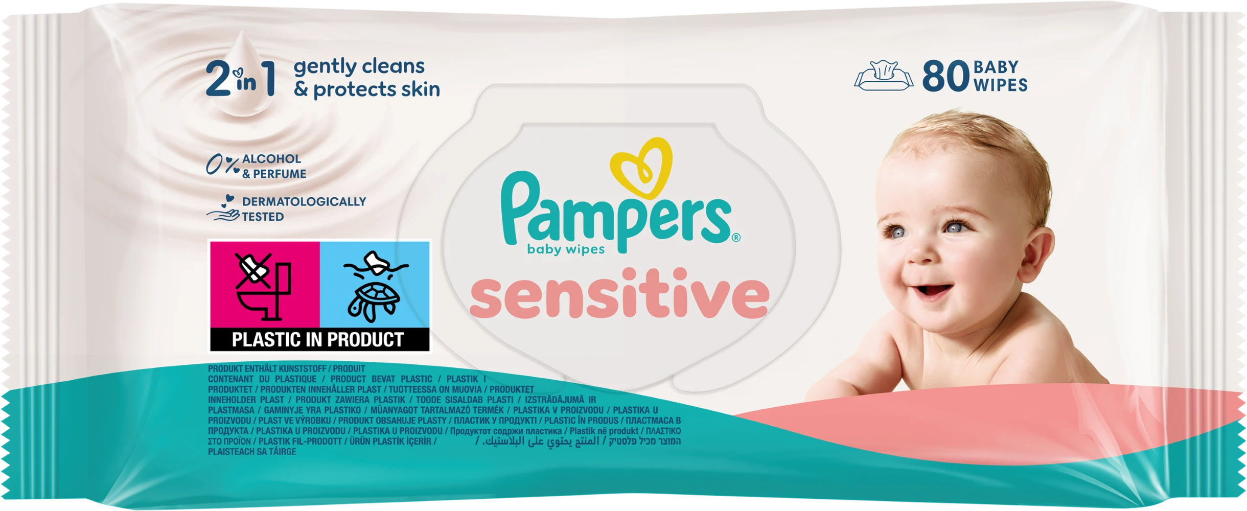 Влажные салфетки Pampers Sensitive обеспечивают нежный уход для детей с чувствительной кожей.