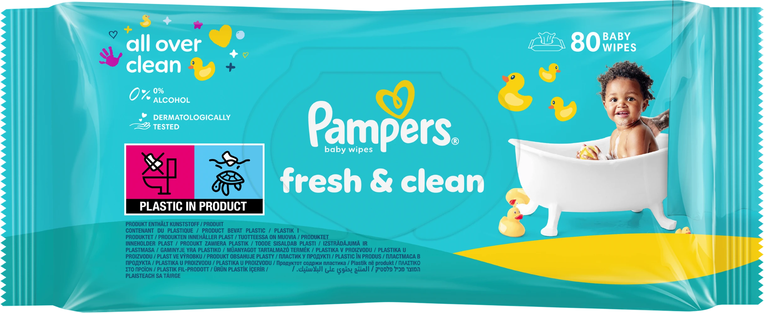 Вашему малышу необходима бережная забота, поэтому мы создали влажные салфетки Pampers Fresh Clean: они мягко очищают кожу и помогают поддерживать естественный уровень pH. Кроме того, салфетки имеют приятный освежающий аромат. Не бойтесь грязи с детскими влажными салфетками Pampers Fresh Clean.