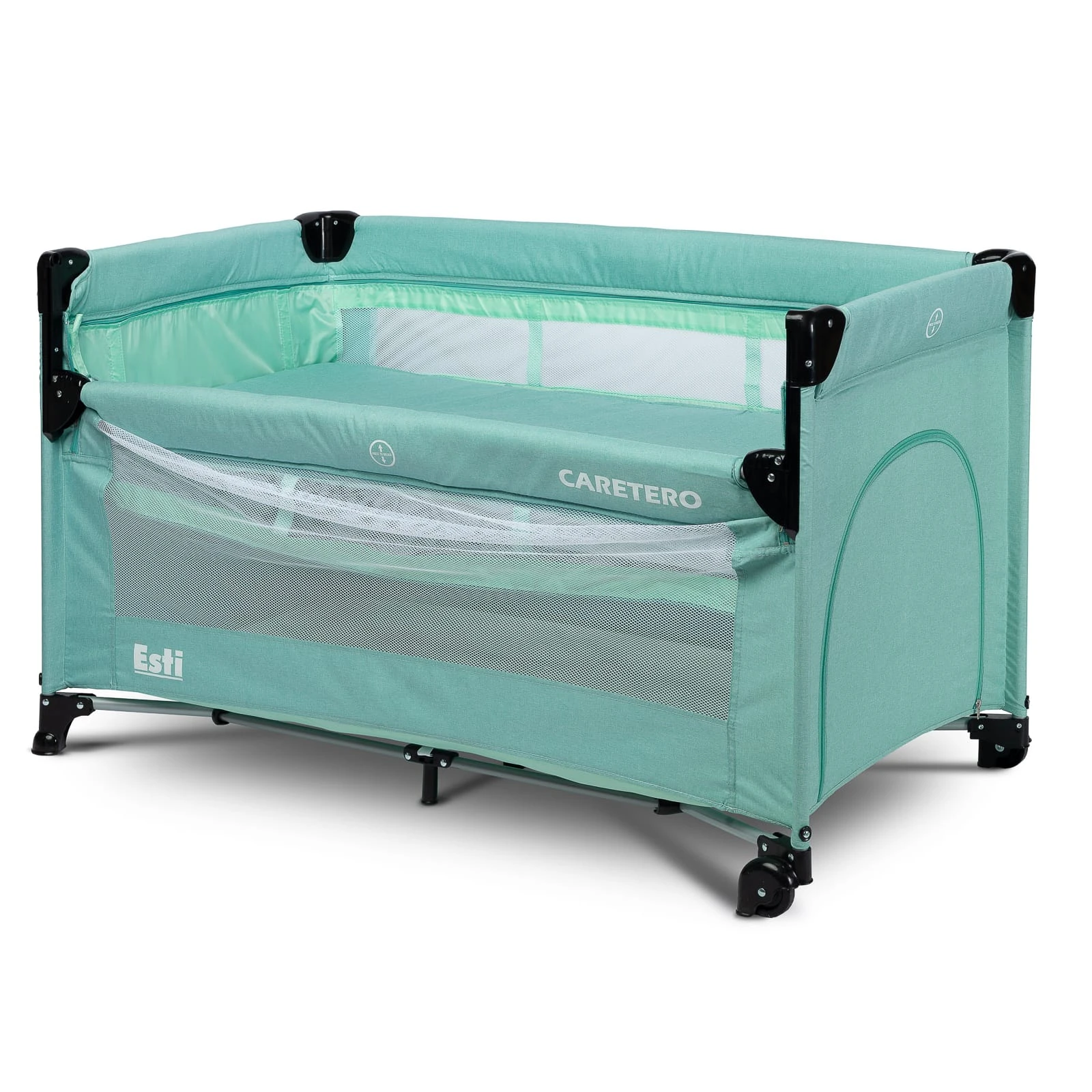Манеж Esti от Caretero для младенцев предназначен для облегчения ухода за ребенком. Основное преимущество заключается в складной боковой части, которая превращает кроватку в продолжение родительской кровати, обеспечивая удобный доступ к ребенку. Механизм складывания прост и быстр. У кроватки есть блокируемые колеса для легкого перемещения. Конец кроватки оборудован окном с молнией для доступа к ребенку. Продукт сертифицирован в соответствии со стандартом EN 716: 2017-07.