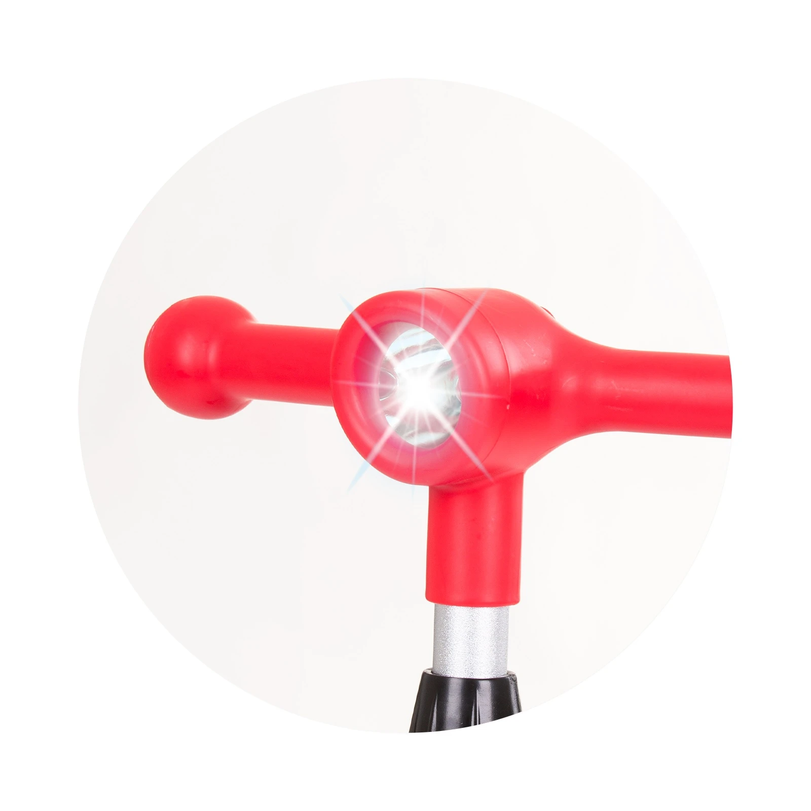 - Передние и задние колеса с разноцветными светодиодными фонарями;