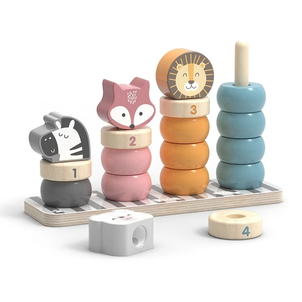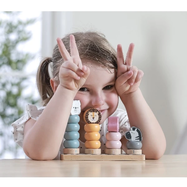 Игры с пирамидками тренируют мелкую моторику, мышление, воображение, зрительно-моторную координацию. Также дети познакомятся со счетом до 4, понятиями количество и больше-меньше. А еще запомнят названия зверей: зебры, лисички, льва и мишки. Деревянные пирамидки помогают малышам развивать память, логическое мышление, цветовое восприятие.