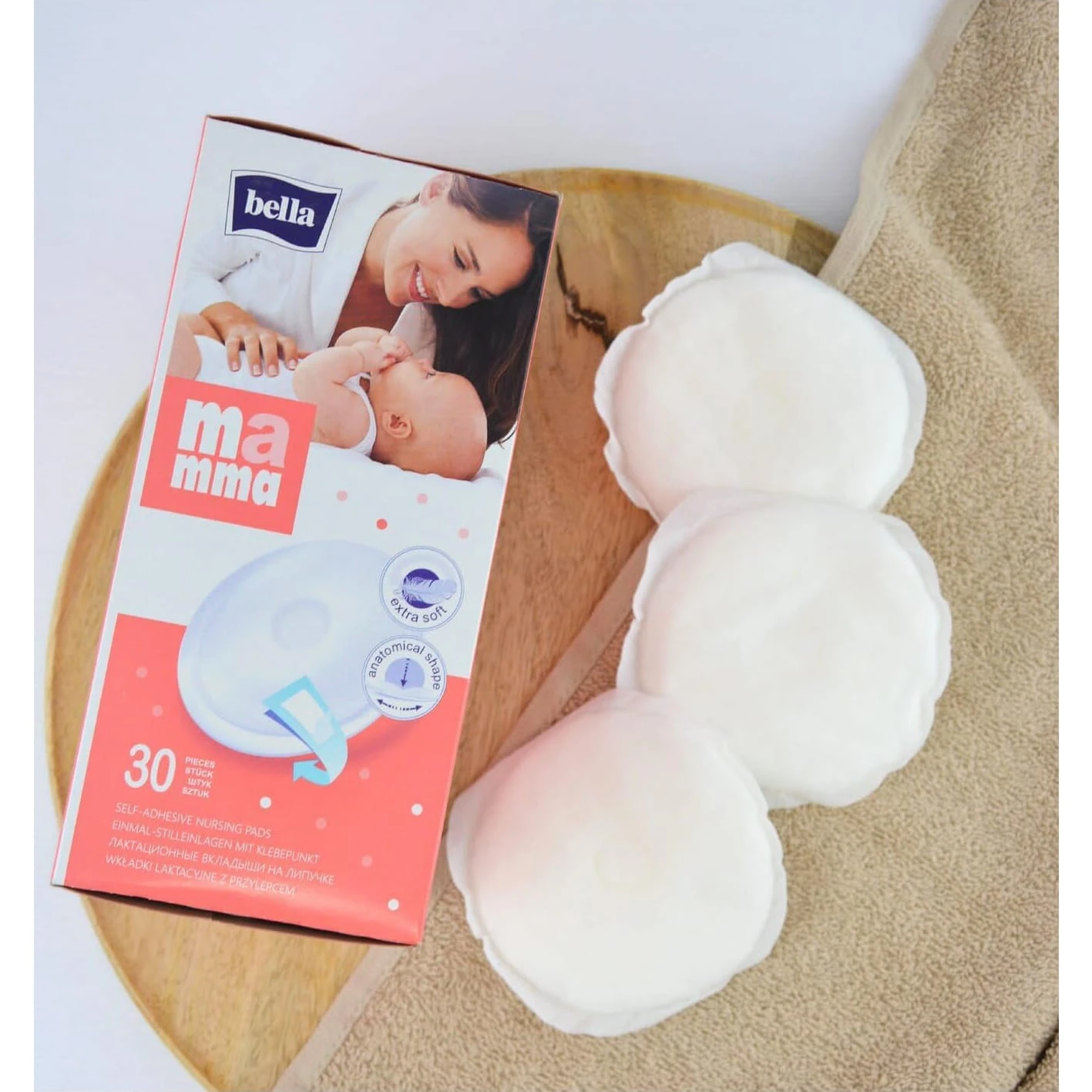 - Анатомическая форма: Благодаря анатомической форме прокладки bella Mamma идеально повторяют контуры груди — вы почти не почувствуете, что они на вас.