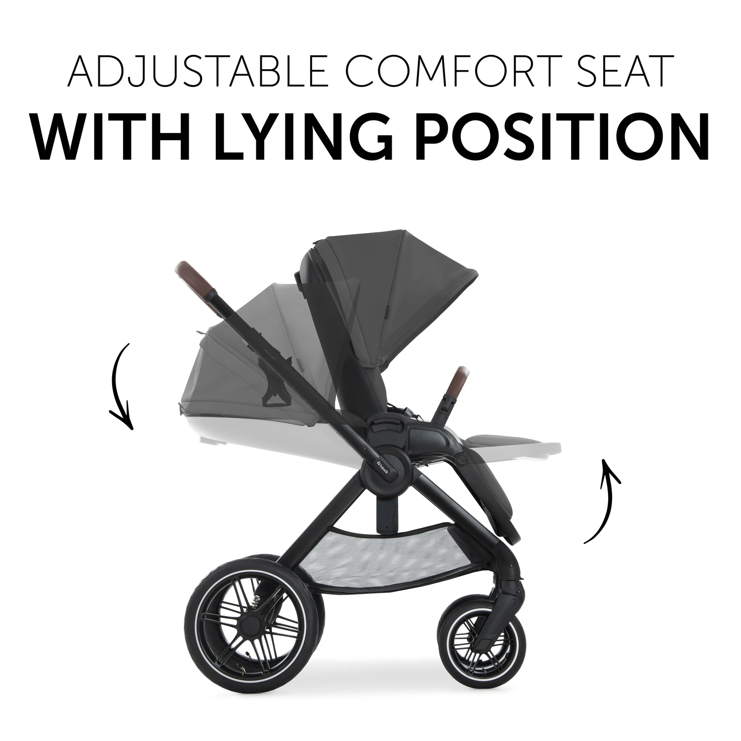 - Комфортное сиденье с возможностью лежачего положения. Сиденье предлагает ребенку много места для открытий. Для сна вы можете полностью откинуть спинку одной рукой и поднять подножку. Чехол сохраняет тепло вашего малыша.