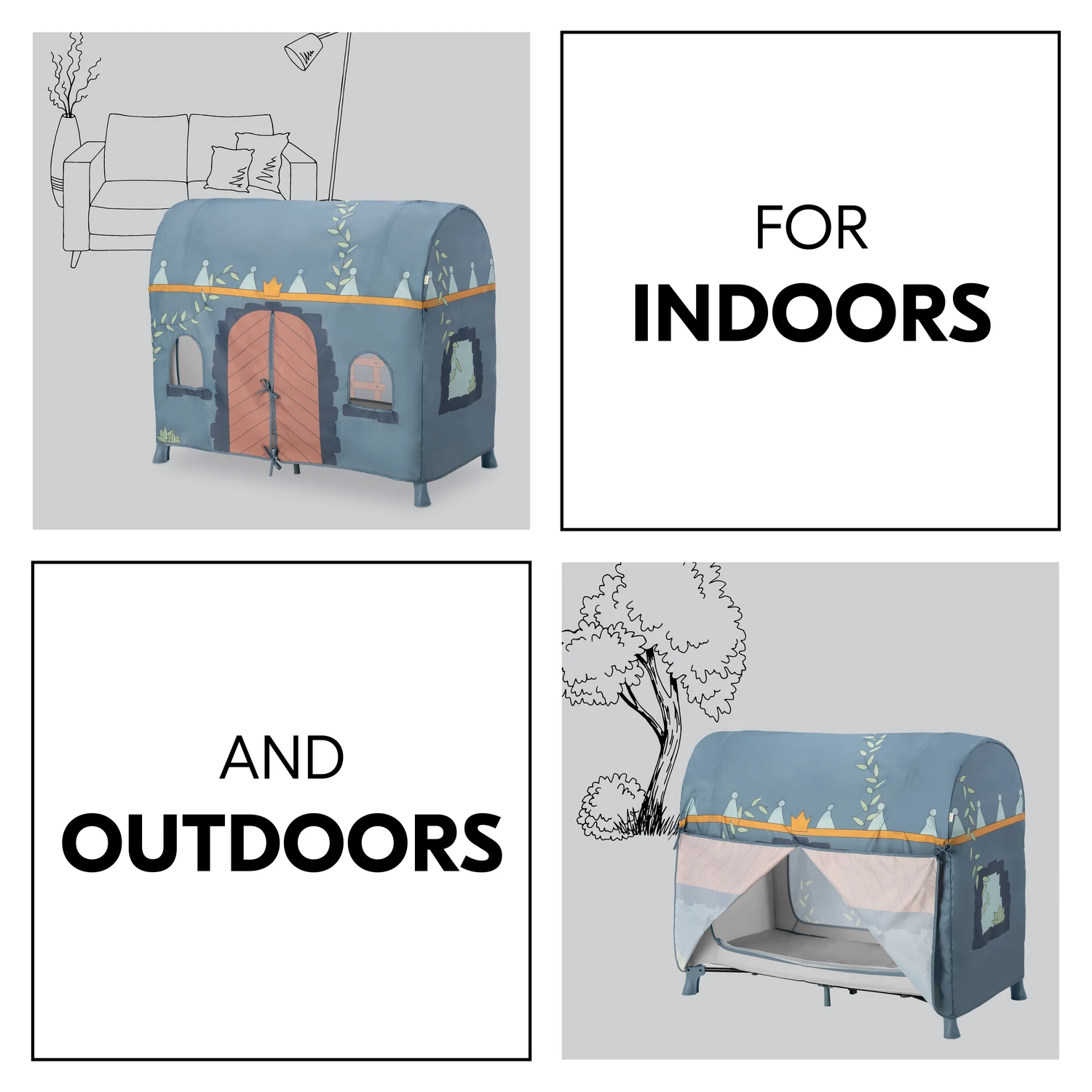 - Для использования внутри и на улице. Делает мечты детей реальностью: кто бы не хотел жить в дворце или саду? Прочное покрытие Travel Bed Cover для использования внутри и на улице обеспечивает массу удовольствия.