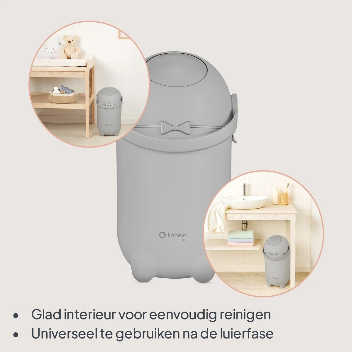 Lionelo Purebin Grey — надежный, гигиеничный и экономичный контейнер для подгузников, идеально подходящий для повседневного использования и современного интерьера. Отличный выбор для молодых родителей и практичный подарок.