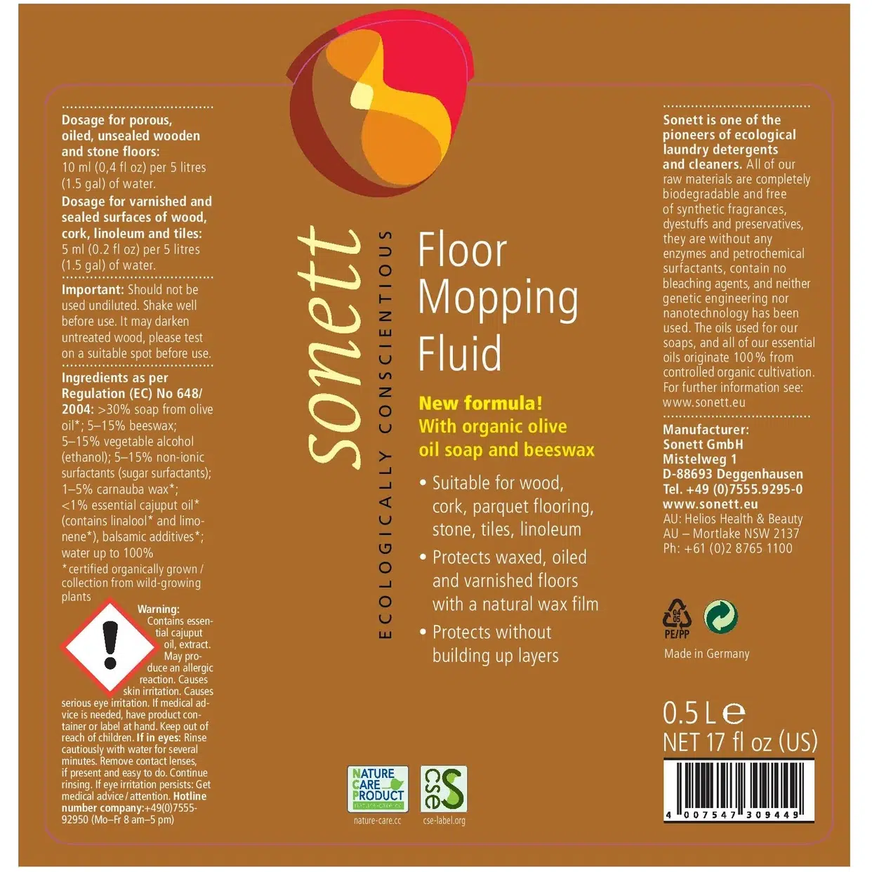 Экологичное средство для мытья полов Sonett – с натуральным воском, для бережного ухода и блеска — это идеальный выбор для очистки и ухода за деревянными, каменными, пробковыми, ламинированными полами и линолеумом. Подходит для поверхностей, обработанных воском, маслом или лаком, освежает, защищает и возвращает природный блеск материалов.