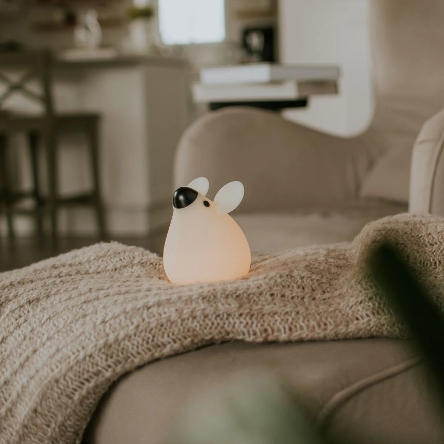 - Игривая и эстетичная форма: Форма в виде мышки придаёт ночнику особый шарм, делая его особенно привлекательным для детей. Мягкая на ощупь отделка и элегантный белый цвет прекрасно вписываются в любой интерьер.