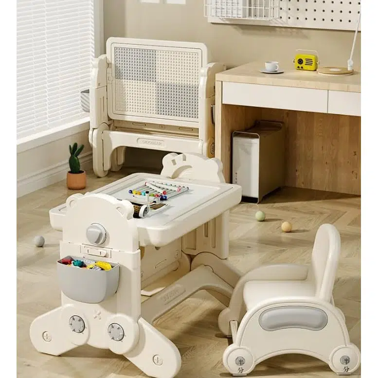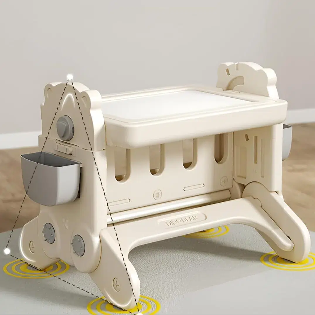 Стол предназначен для различных видов деятельности: его можно использовать как учебный стол, место для рисования или даже игровую зону. Столешница адаптирована для творческих занятий и может включать функции, такие как поверхность для конструирования, доска для письма или место для песка (в зависимости от конфигурации).