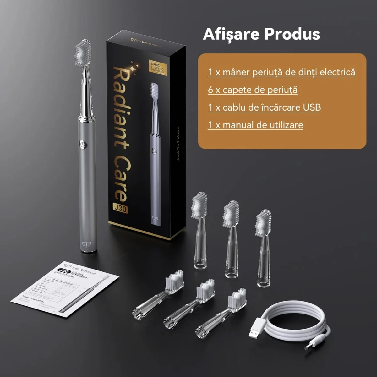 Электрическая зубная щётка JTF Sonic J30 сочетает элегантность и высокую эффективность. Благодаря передовой звуковой технологии, современному дизайну и блестящей отделке, щётка обеспечивает тщательную, бережную и полноценную чистку зубов для здоровой и сияющей улыбки. Идеальна для ежедневного использования и подходит для всей семьи.
