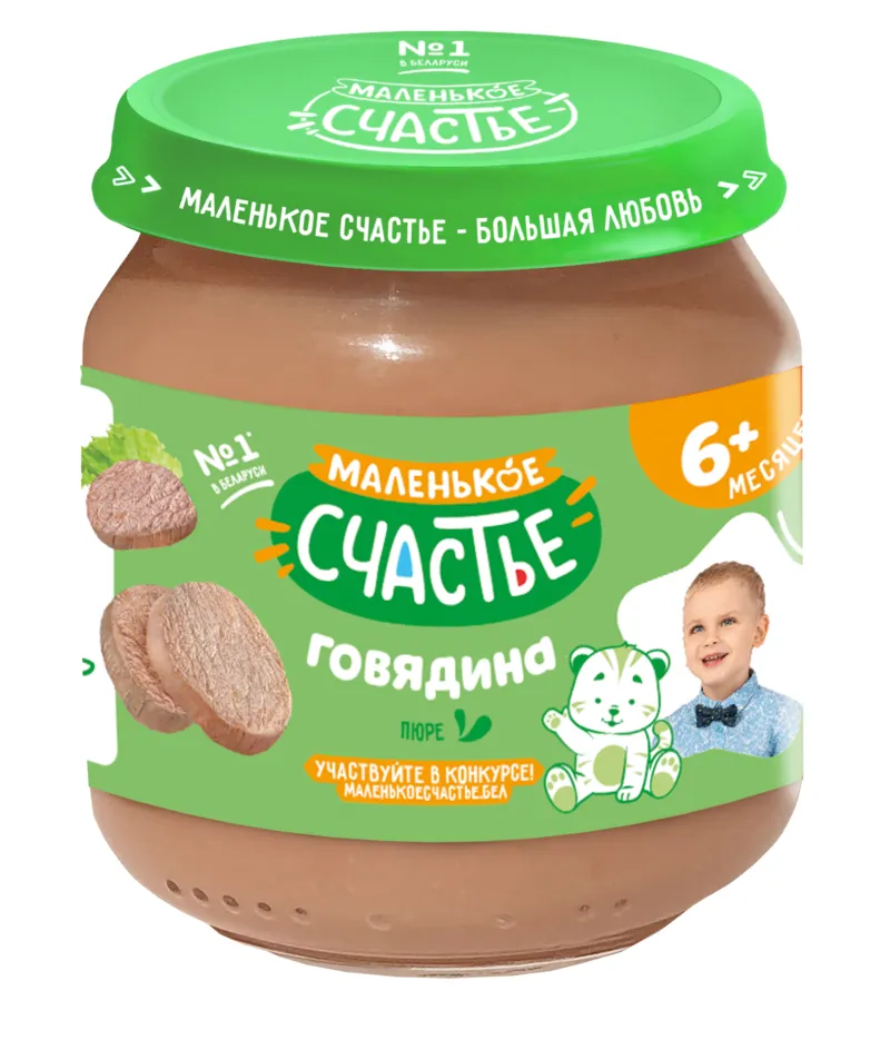 Пюре Маленькое счастье рекомендовано в качестве мясной составляющей рациона малышей. Пюре изготовлено без использования генетически модифицированных ингредиентов, искусственных консервантов, красителей и ароматизаторов.