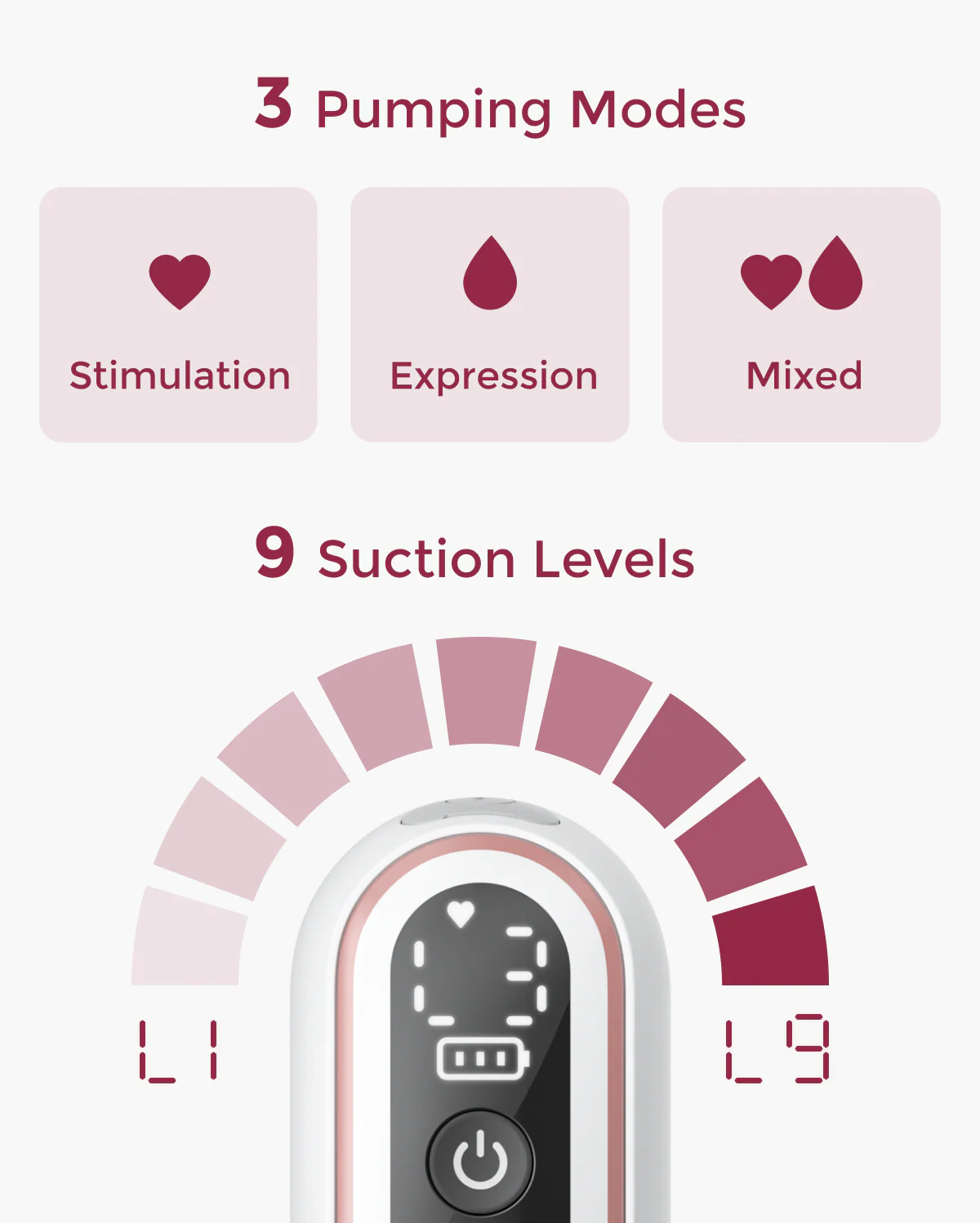 - 3 режима работы: Стимуляция, Сцеживание и Комбинированный, для адаптации к индивидуальным потребностям