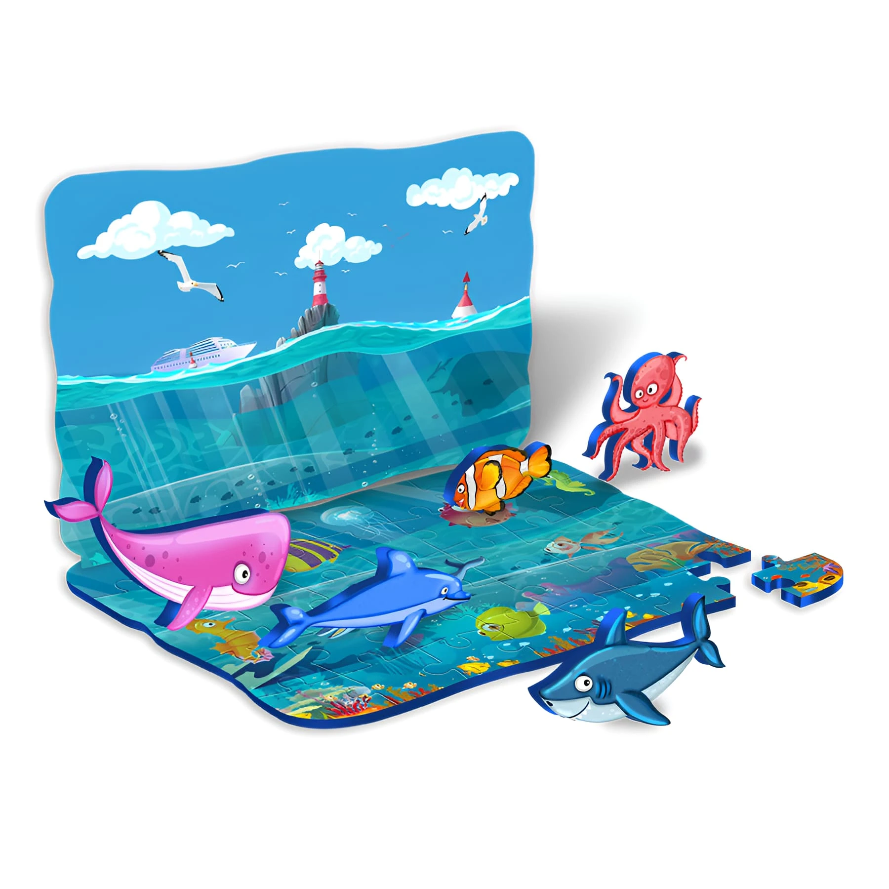 - Полный набор: 17 элементов — 12 деталей пазла + 5 интерактивных 3D-объектов