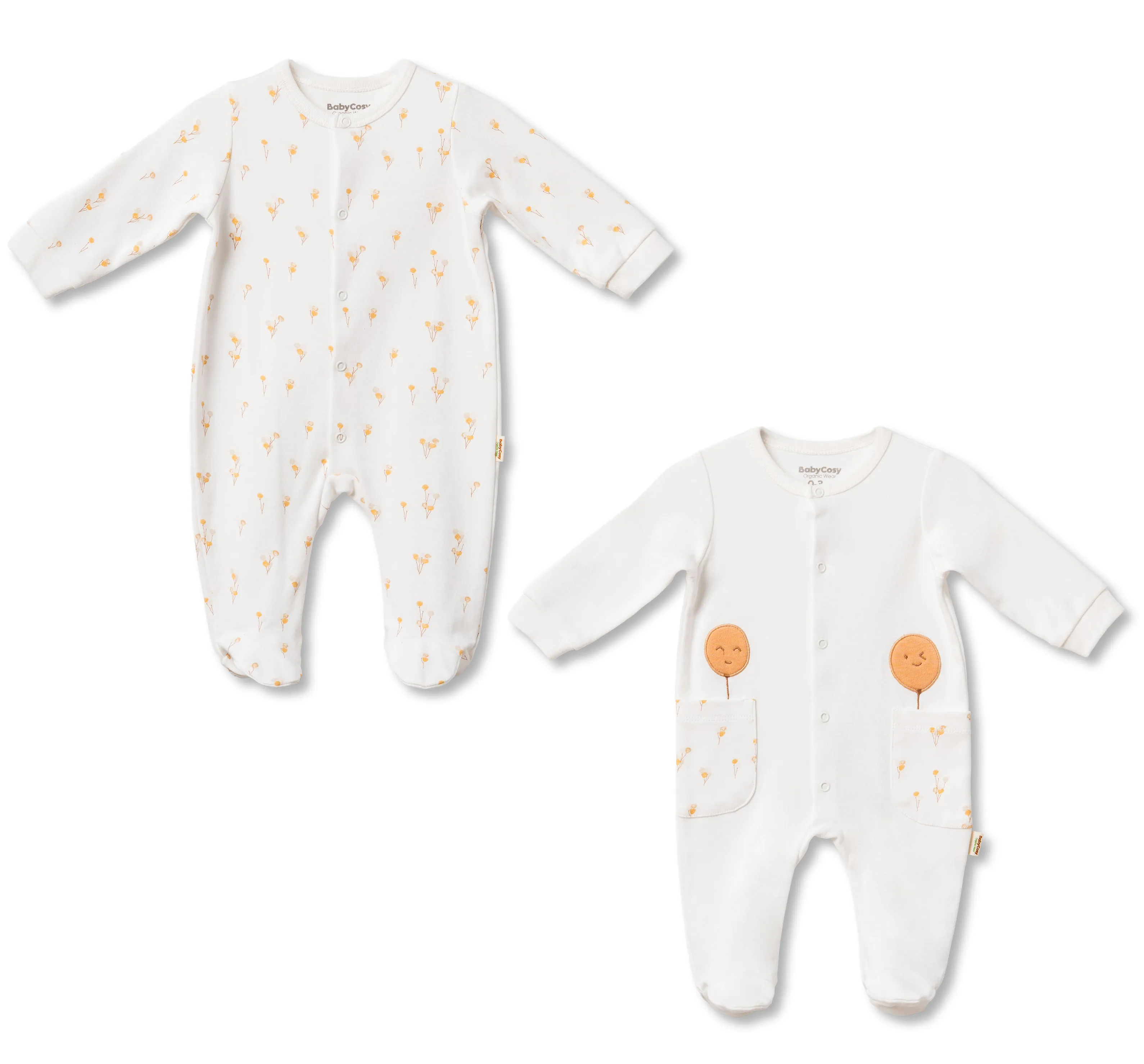 Комбинезоны BabyCosy Ivory & Orange, 2 шт. (1-3М)