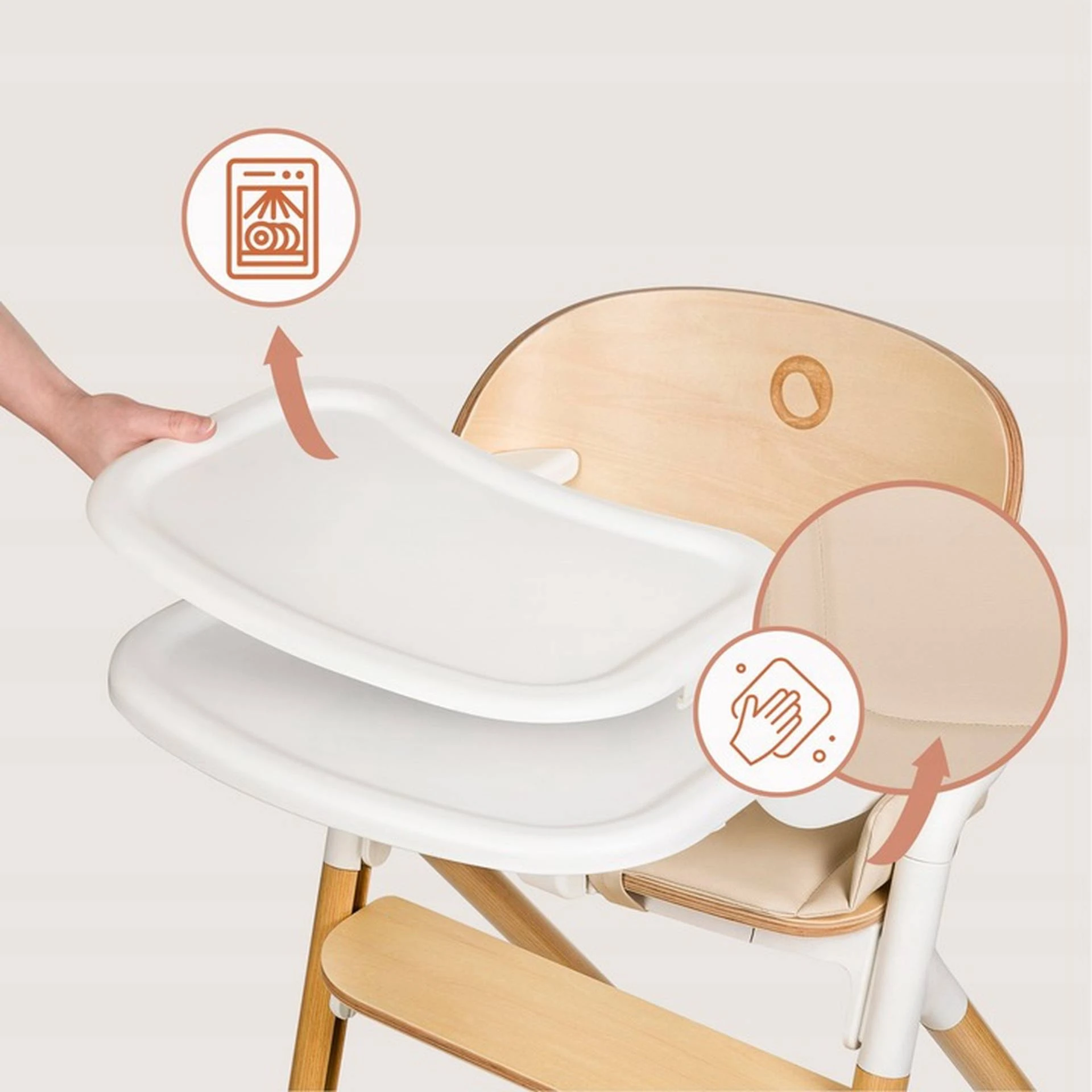 Сочетание естественного дерева и белого цвета придаёт стульчику элегантный вид, а продуманная конструкция обеспечивает безопасность, комфорт и простоту ухода.