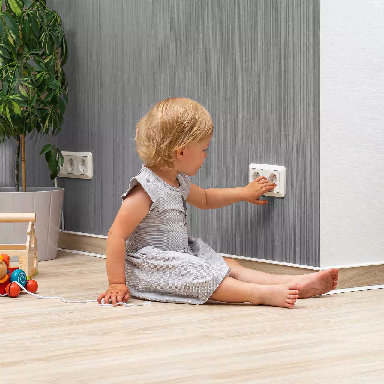 По мере того как ребенок становится более подвижным, он начинает тянуться к более опасным местам в доме, включая электрические розетки. Для предотвращения несчастных случаев наклейки Reer, в наборе из 10 штук, защищают малыша. Замок безопасен для детей — его можно открыть только одновременно повернув оба штыря вилки.