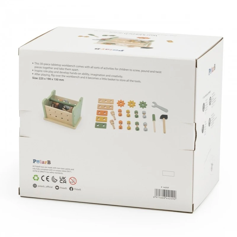 Подарите вашему ребенку возможность почувствовать себя настоящим мастером с деревянным верстаком от PolarB! Этот увлекательный набор полностью выполнен из дерева и включает всё необходимое для активной и безопасной игры: молоток, гаечный ключ, шестерёнки, винты, гвозди и деревянные планки.