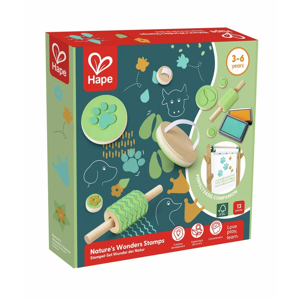 Погрузитесь в мир природы и творчества с набором штампов Nature Fun Stamps от Hape! Этот разнообразный набор включает в себя штампы разных форматов с природной тематикой, которые помогут ребёнку развить мелкую моторику, воображение и творческие способности.