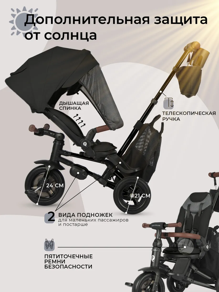 Трёхколёсный велосипед QPlay Nova Deluxe — отличный выбор для родителей, которые ищут комфорт, безопасность и функциональность, обеспечивая ребёнку приятные и безопасные прогулки.